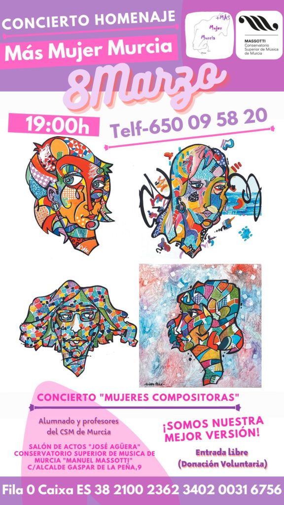 19:00h Concierto Homenaje a la Asociación Más Mujer de Murcia. Obras de mujeres compositoras.