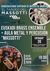 El Conservatorio Superior de Música de Murcia Manuel Massotti Littel inaugura este viernes 30 de enero, a las 19h, la programación de El Tardeo del Massotti en el nuevo año 2026, dentro de la nueva edición del ciclo, iniciada en diciembre de 2025 tras el éxito de su primera convocatoria.
