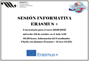 Si estás interesado en realizar una movilidad o tienes alguna duda sobre el programa Erasmus + ésta es tu oportunidad. Te esperamos el próximo miércoles 22 de octubre a partir de las 10:30 horas en el Aula A 10.